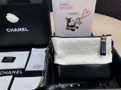 香奈兒 白與黑 Gabrielle 中號流浪包 復古小牛皮、光滑小牛皮