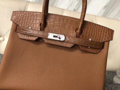 爱马仕铂金包官网价格 Hermes Birkin 30cm Touch Ck37金棕色 TOGO/雾面美洲鳄