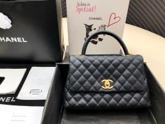 香奈兒口蓋包配手柄coco handle bag 中號 黑色 魚子醬牛皮與金色金屬