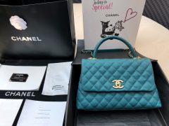 香奈兒口蓋包配蜥蜴皮手柄 coco handle bag 小號 孔雀綠色