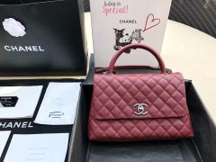 小香口蓋包配手柄 復古手堤包coco handle bag 中號 酒紅色
