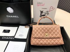 香奈兒口蓋包配手柄 復古手堤包coco handle bag 中號 焦糖色