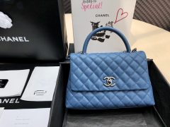 香奈兒口蓋包配手柄 復古手堤包coco handle bag 中號 寶藍色