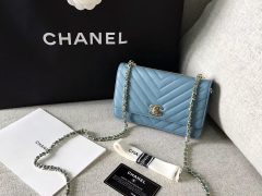 小香2018年款的新woc 鏈條小包 發財包 霧霾藍羊皮革與全鋼金色金屬