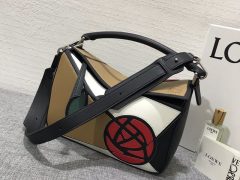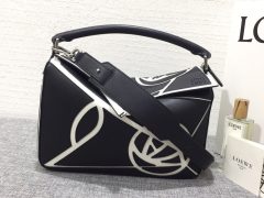 羅意威包包官網 LOEWE Puzzle Roses Bag 小牛皮黑色/白色