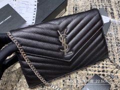 聖羅蘭臺灣官網 ysl MONOGRAM WOC 黑色真皮鏈式皮夾