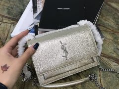 聖羅蘭 YSL mini SUNSET bag 鉆石紋理閃亮真皮鏈條錢包