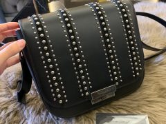 聖羅蘭女包官網 YSL ETTY 黑色鉚釘復古銀色真皮小肩包