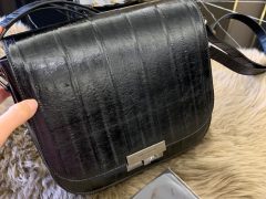聖羅蘭女包官網 YSL BETTY 黑色鰻魚皮包 可調式肩帶翻蓋真皮肩背女包