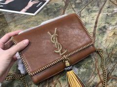 聖羅蘭包包官網 YSL 504572黃棕 專櫃最新同步KATE 雙色油蠟變色皮