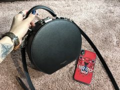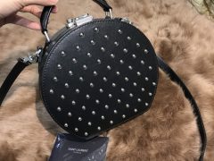 聖羅蘭包包官網 YSL MICA小號 黑色真皮 铆钉点缀 圓形帽包