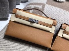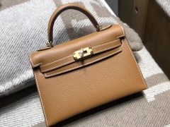 愛馬仕凱莉包 Hermes Mini kelly epsom CK37 Glod 金棕色 银扣金屬
