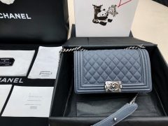 香奈兒口蓋包 Leboy bag 霧霾灰 INCAS 胎牛魚子醬細球紋 復古銀色