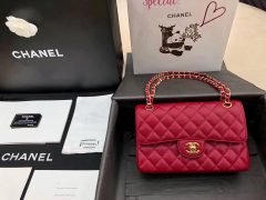 Chanel Classic Flap Bag 小號經典口蓋包 红色顆粒壓花小牛皮與金色金屬