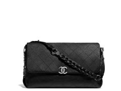 chanel顆粒壓花編織黑色小牛皮 口蓋包Flap bag