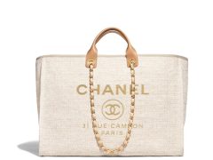 2018春夏新款帆布沙灘包 小牛皮Large shopping bag大號手提包 米色