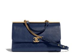 香奈兒2018春夏款 海軍藍羊皮蜥蜴皮 口蓋包Flap bag with top handle