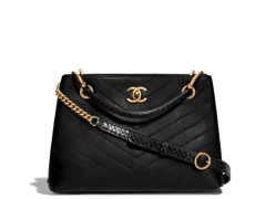 chane 2018春夏預告系列款 黑色小牛皮 小號拉鏈購物包Small zipped shopping bag