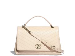 chane 米色 顆粒壓花小牛皮 2018春夏預告系列口蓋包Flap bag