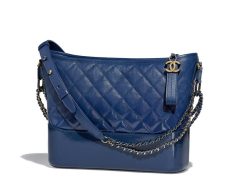 2018春夏系列山羊皮、漆皮銀色與金色金屬Gabrielle流浪包深藍色