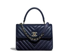 Chanel 2018早春度假系列 海軍藍色羊皮 當季新款小號口蓋包配以手柄