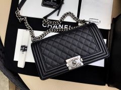 香奈兒 黑色水洗胎牛 魚子醬細球紋 Leboy bag 口蓋包 复古银色金屬