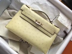 爱马仕迷你凯莉包Hermes Mini Kelly鴕鳥M9 Mimosa冰凌黃 金色金属