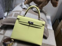 Hermes Kelly包 25cm Epsom 1Z Jaune Poussin小雞黃外縫銀扣