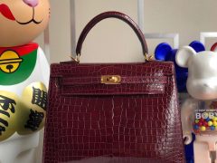 臺灣新北市三重區 Hermes Kelly 25cm 亮面倒V 澳洲灣鱷 57 Bordeaux 波爾多酒紅