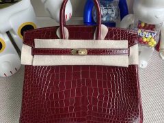 Hong Kong Hermes Birkin 25cm 57 Bordeaux 波爾多酒紅 美洲鱷魚 金扣