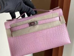 Hong Kong Hermes Mini Kelly Pochette 5P pink 櫻花粉 霧面方塊 美洲鱷魚