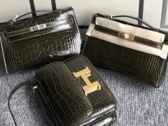 愛馬仕凱莉包專櫃價格 Hermes Kelly25cm尼羅鱷 6H橄欖綠 9G水晶紫