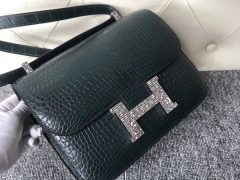 Macao Hermes Constance 24cm 美洲鱷 6O松柏綠 Vert cypres 自然色蜥蜴扣