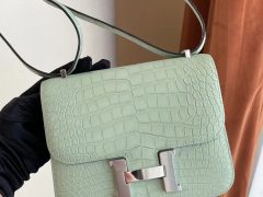 臺灣桃園市桃園區 Hermes Constance 19cm 6U 薄荷綠 Vert D'Eau 霧面美洲鱷魚