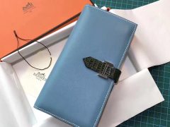 香港元朗區米埔愛馬仕 Hermes Bearn Wallet 兩折錢夾Swift 牛仔藍搭配蜥蜴銀扣