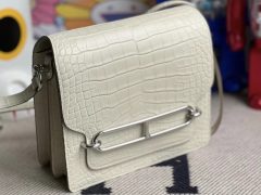 馬來西亞愛馬仕專賣店 Hermes Roulis Mini 18cm 8L Beton 奶油白 霧面美洲鱷魚