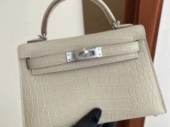 Hong Kong Hermes Mini Kelly II 2代 8L Beton 奶油白霧面方塊 美洲鱷魚