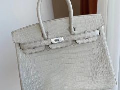 香港北區上水愛馬仕鉑金包 Hermes Birkin 25cm 尼羅鱷魚 8L Beton 奶油白 銀扣