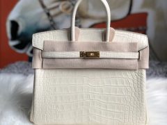 Hong Kong Hermes Birkin 25cm Matte Mississippiensis alligator 8L Beton 奶油白