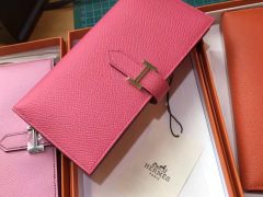 香港葵青區青衣 愛馬仕長款錢包 Bearn 兩折錢包Epsom 8W Rose Azalee 新唇膏粉金扣