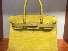Taiwan Hermes Birkin 25cm 9D Jaune Amber 琥珀黃 供珠亮面倒V 澳洲灣鱷