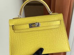 Hermes Kelly Mini II 2代 9R Lime 檸檬黃 霧面方塊 美洲鱷魚銀扣