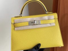 臺灣桃園縣 Hermes Kelly mini II 2代 9R Lime 檸檬黃 Chevre Mysore 山羊皮 銀扣