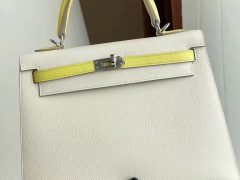 Hermes Kelly 25cm Hss Epsom CK10 Craie 奶昔白 拼 9R Lime 檸檬黃 銀扣