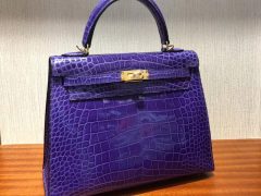 Singapore Hermes Kelly 25cm 9W夢幻紫 亮面兩點尼羅河鱷魚 金扣
