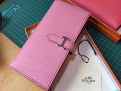 愛馬仕長款錢包 Hermes Bearn 兩折錢包Epsom 5P Pink 櫻花粉銀扣