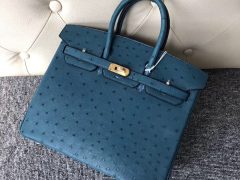 臺灣桃園愛馬仕定制服務 Taiwan Hermes 7C珊瑚藍 Birkin 25cm Ostrich KK 南非鴕鳥皮