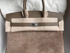 愛馬仕鉑金包包價格 Hermes Birkin 25 Boblis Suede 麂皮拼Swift 18 Etoupe 銀扣