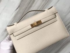 Malaysia Hermes MiniKelly Pochette 22cm CK10奶昔白 Craie Epsom 皮