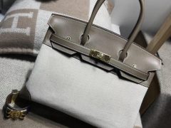 Hermes Birkin 30 Bag Ghillies swift CK18 Etoupe大象灰拼帆布金扣